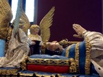 14世紀から15世紀の間、ディジョンはブルゴーニュ公国の首都となり、公宮殿は現在美術館となっており、フィリップ2世とジャン1世のお墓が置かれています。どちらも祈りをささげる生前の姿を模した彫刻が施され、足元にはライオン、頭頂には羽を広げた天使の彫刻がおかれている。その下には無彩色の 40cm ほどの「嘆く男たち (pleurants) 」が墓を取り囲むように配置されている。この小さな彫刻は国内でも主要な美術品のひとつに数えられています。