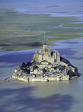 中世には 巡礼地として賑わい、フランスの危機だったイギリスとの百年戦争の時には、一日二回満ちてくる潮が、周囲を海にして攻撃を不可能にした。以来、このモンサンミッシェルは、難攻不落のフランス国民の象徴として今も立つ。