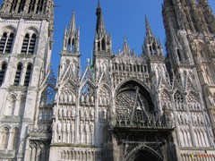 中世 からの古都であり、ルーアンの大聖堂は ゴシック建築 の代表として知られる。 クロード・モネ の中期の連作『ルーアン大聖堂』はこの聖堂を主題としたものである。また、 百年戦争 で捕虜となった ジャンヌ・ダルク は、 1431 年 にこの町で 火刑 に処されている 。